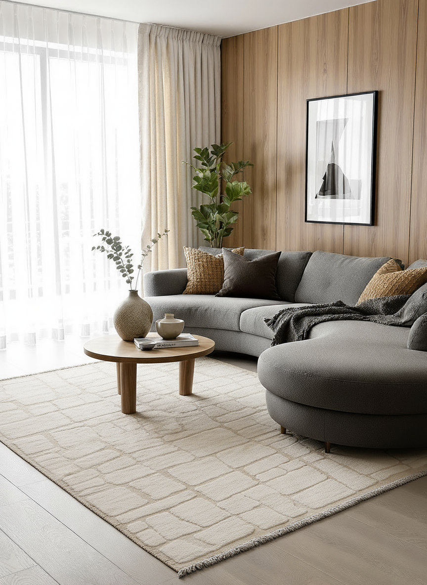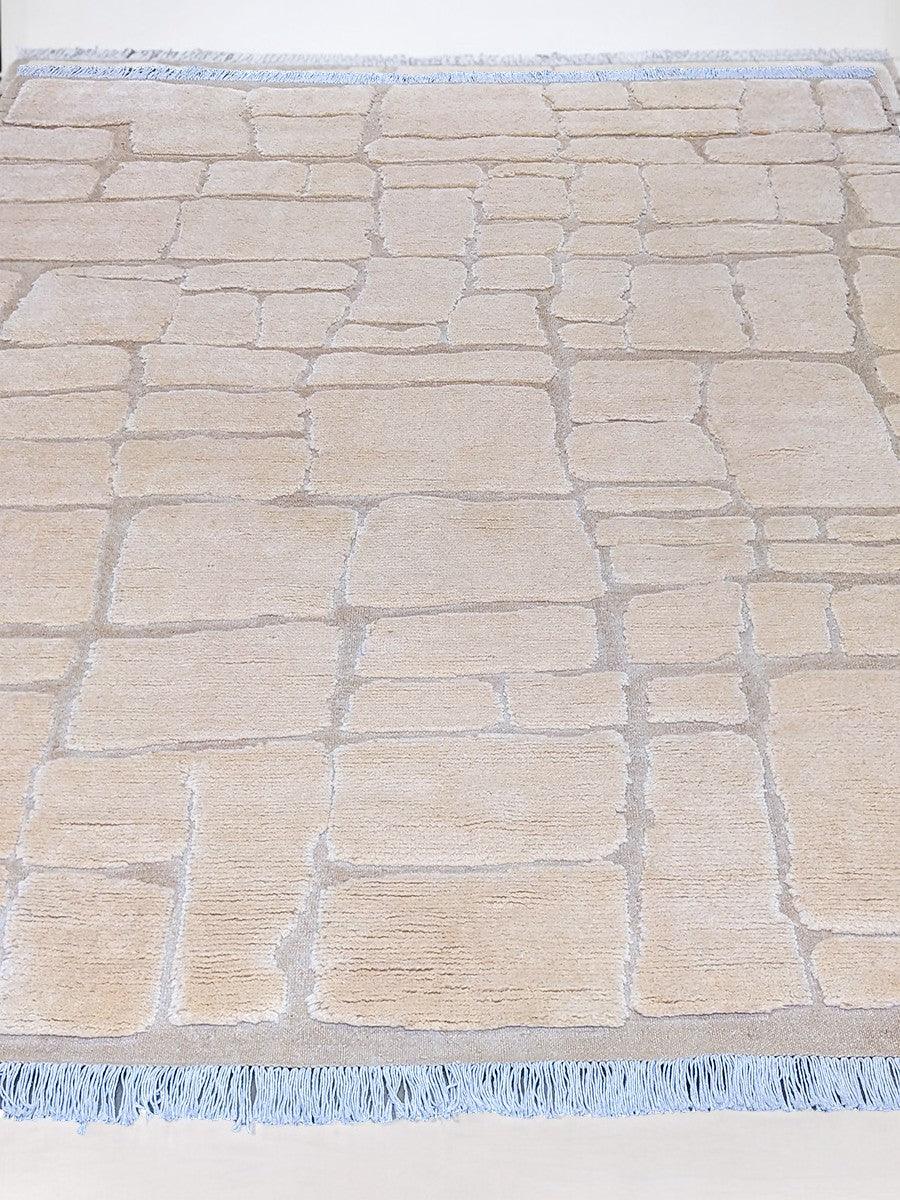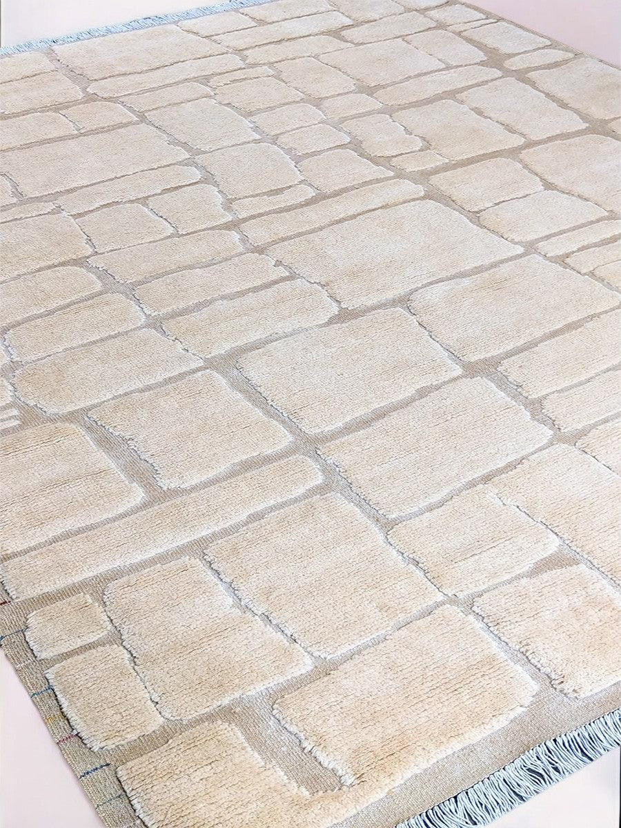 Efficiently crafted and uniquely designed, the Modishic abstract Nordic style rug boasts a splendid cobblestone pattern with a textured feel, a simple geometric pattern with various-sized rectangles arranged in an offset grid, and a neutral colour palette with fringe detailing. Each piece is carefully hand-knotted and carved from premium undyed wool, making it both durable and eco-friendly.