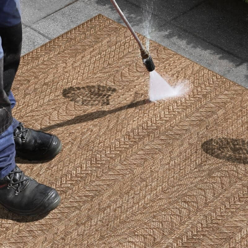 Bring natural texture and a modern touch to your home or outdoor spaces with the Granado Indoor Outdoor Rug. Its chevron sisal-look design in beige and brown adds warmth and subtle depth, perfect for patios, hallways, kitchens, or living areas.