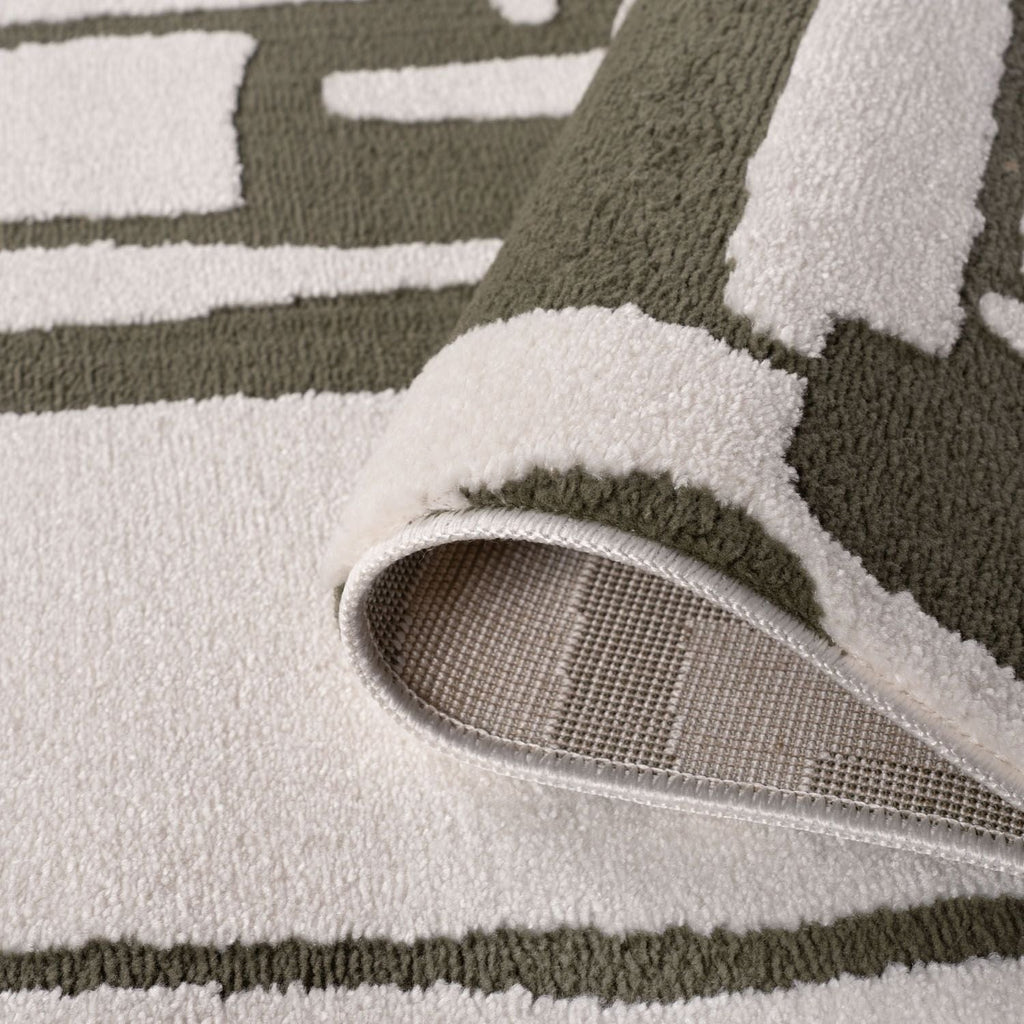 Bring natural calm to your home with the Loft Abstract Green Rug. Its abstract geometric design features fluid olive-green shapes on a light cream base, creating a subtle, earthy statement that adds visual interest without overwhelming your space. Perfect for living rooms, bedrooms, or creative areas.
