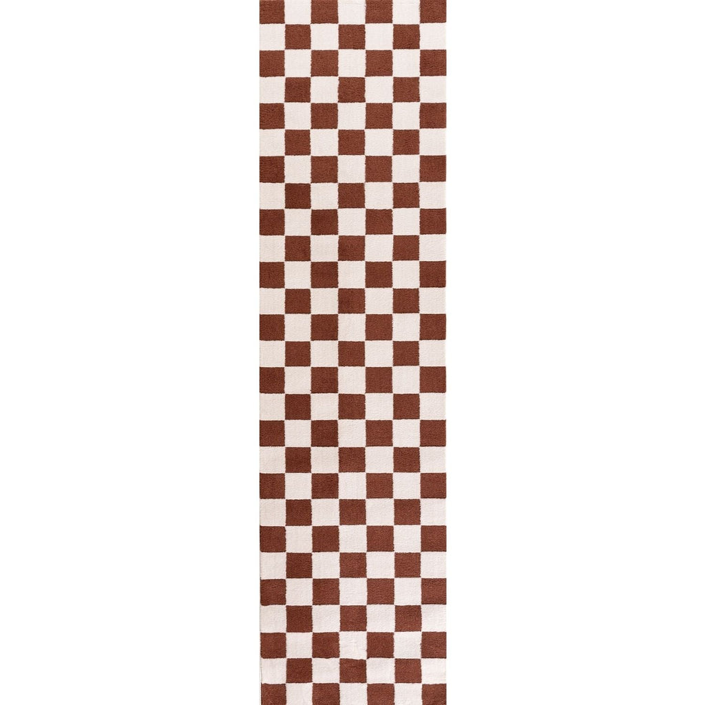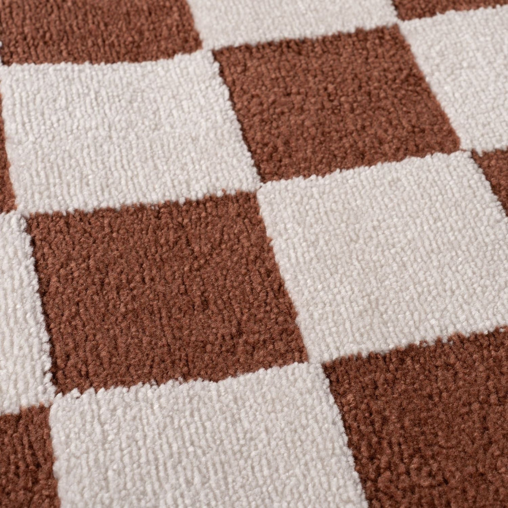 Style Tip: Perfect for warm, earthy interiors, this terra checkerboard rug pairs beautifully with natural woods, soft neutrals, and minimal décor for a cozy, refined atmosphere.