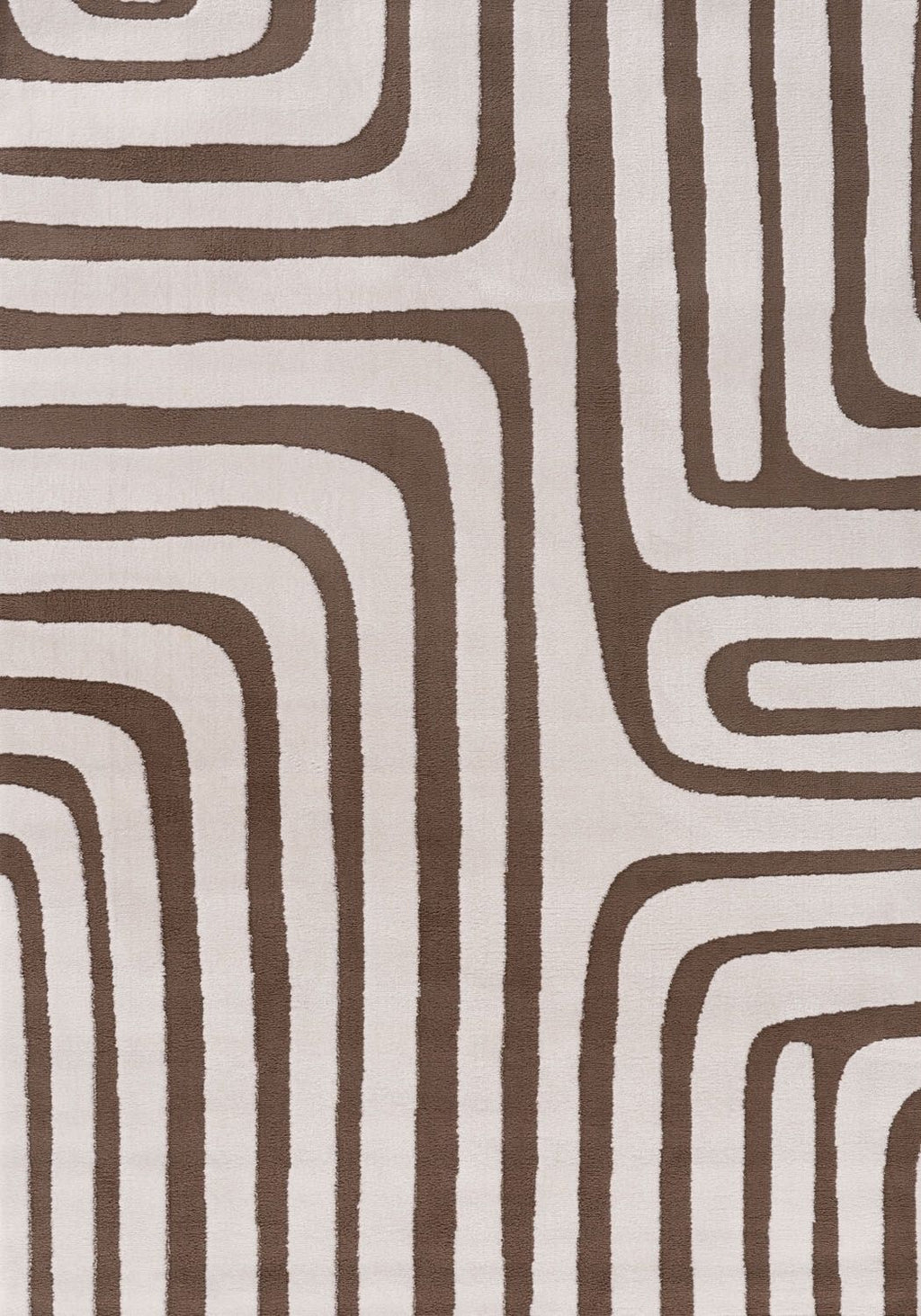 Elevate your home with the Loft Geometric Brown Rug. Its maze-style geometric pattern with flowing, rounded lines creates a bold yet calming look. Warm brown detailing set against a soft cream base adds depth and balance, making it a striking choice for living rooms, bedrooms, or statement interiors with a modern or retro-inspired feel.