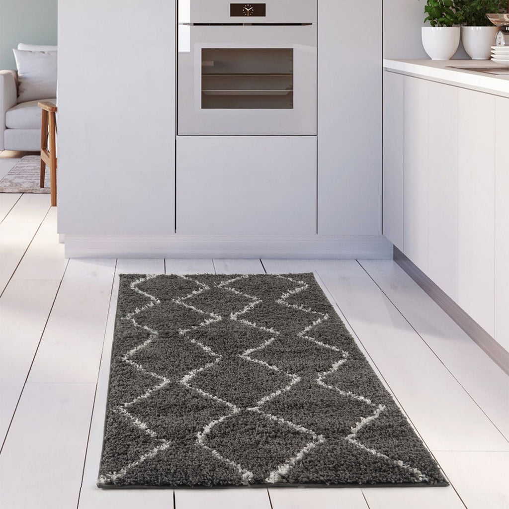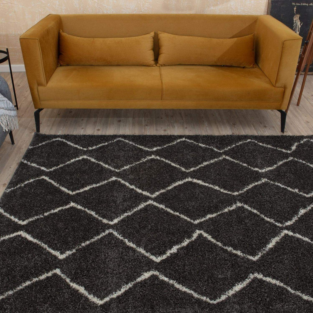 Bring bold sophistication to your home with the Moroccan Dark Grey Shaggy Rug. Its striking pattern creates a chic focal point, effortlessly enhancing both contemporary and classic interiors.