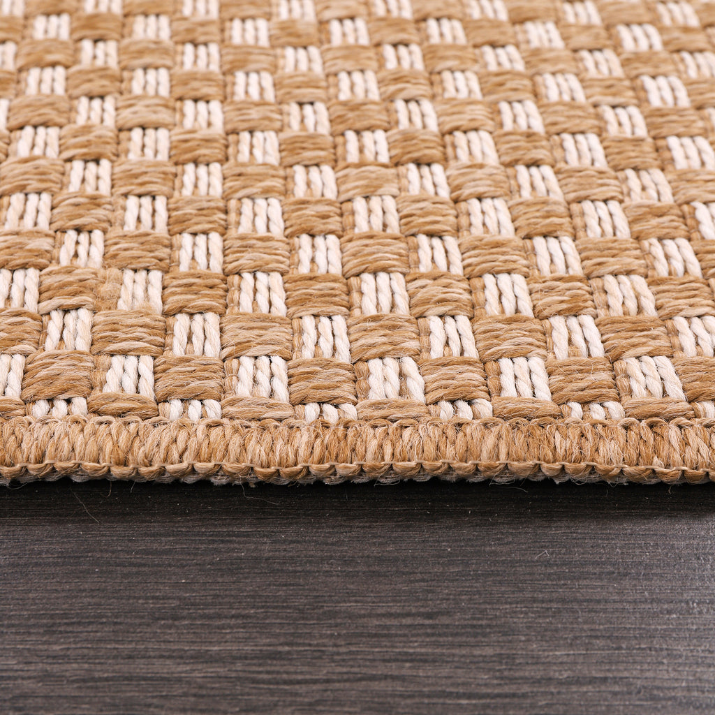 This design showcases a small-scale check pattern in natural jute tones woven together with creamy highlights. The repeated squares create a gentle, rhythmic look that works well in both classic and contemporary spaces – especially where you want texture without a bold motif.