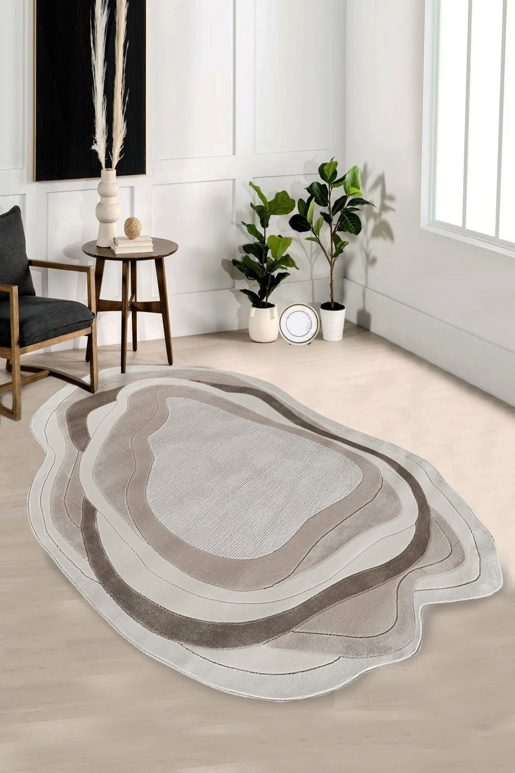 Netline Home Rugs Depot Cream Modern Amorf AR006 Area Rug – Polypropylene and Polyester, Non‑Shed, Easy‑Clean, Durable | Bedroom, Study, Kids Room, Entryway