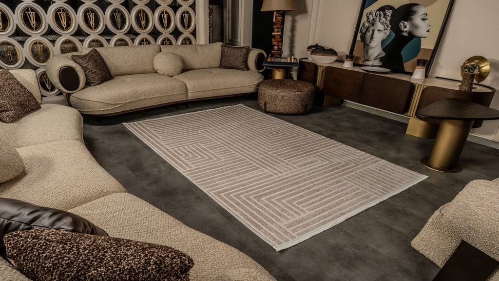 Netline Home Rugs Depot Beige Modern Cunda CN016 Area Rug – 100% Acrylic, Non‑Shed, Easy‑Clean, Durable | Bedroom, Study, Kids Room, Entryway
