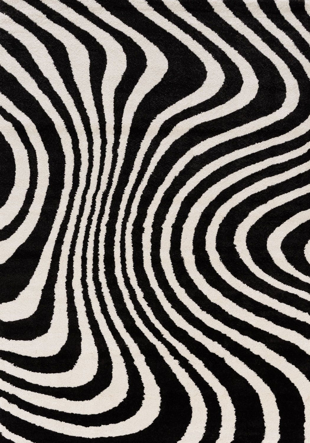 Make a bold statement with the Joli Striped Black & White Rug. Its striking black-and-white ripple pattern adds a modern, graphic edge, while the plush pile brings softness and visual depth to any living space.