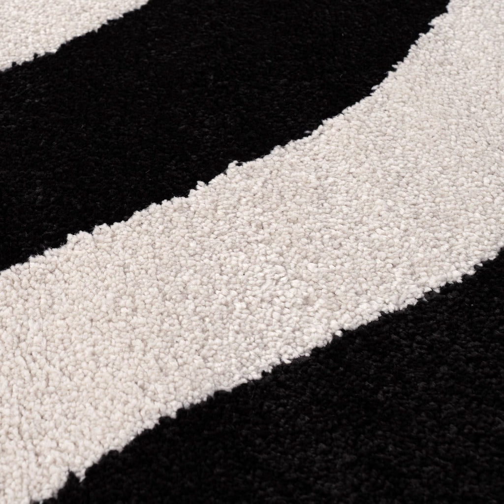 Elevate your interior with the Joli Wave Black & White Rug. Its flowing black-and-white wave design creates a bold, contemporary look while the plush pile brings warmth and comfort to any room.