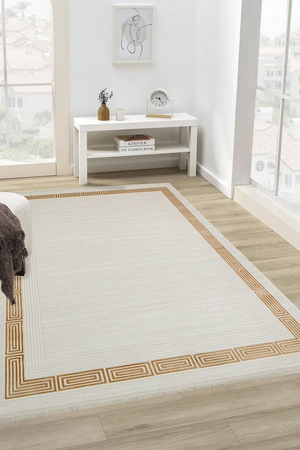 Netline Home Rugs Depot Cream Modern Mazzini 1482 Area Rug – 60% Viscose and 40% Acrylic, Non‑Shed, Easy‑Clean, Durable | Bedroom, Study, Kids Room, Entryway