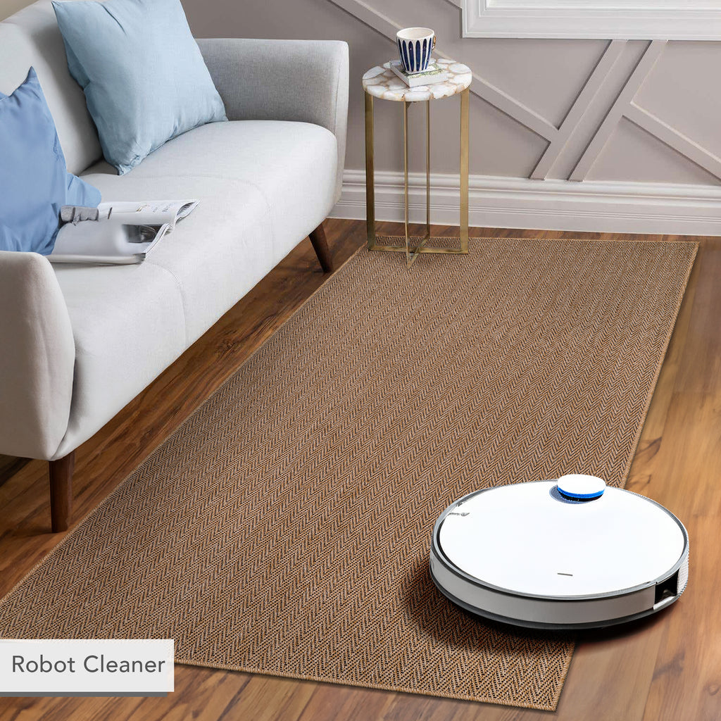 - Stain-resistant flat woven surface that stays fresh in high-traffic areas