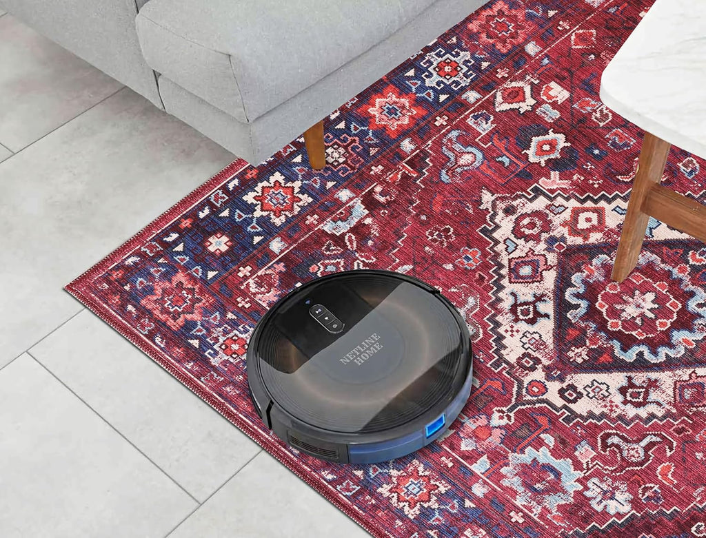 The Netline Home Geometric Rug in Black & White tones brings timeless patchwork design into your home. Inspired by heritage weaving traditions and adapted for modern living, this rug is machine washable and perfect for UK & EU homes.