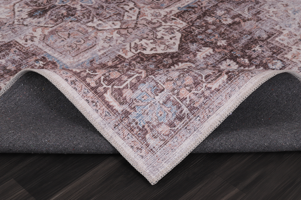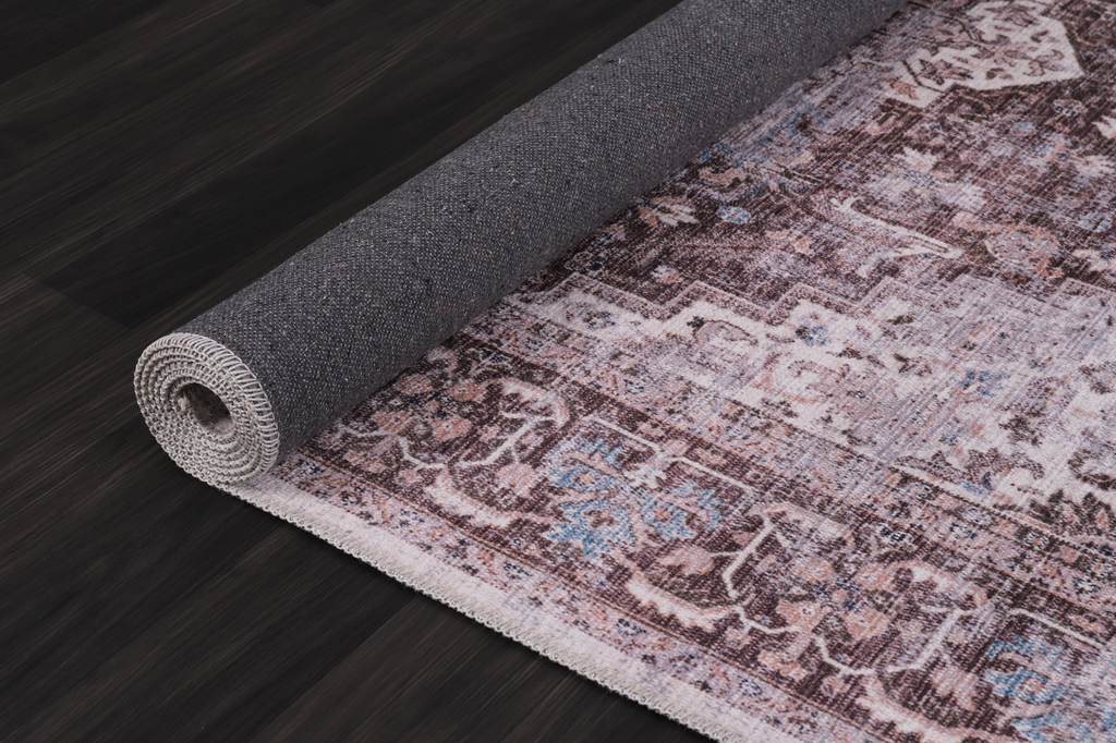 Rug Story: This design is inspired by Eastern Mediterranean patterns, continuing a weaving tradition that spans centuries. In this rug, medallions symbolise unity and balance, bringing both symbolism and visual strength to the piece. Additionally, floral vines stand for fertility and renewal, reminding us of the cultural wisdom woven into every thread. Artisans historically used such motifs not only for decoration but also as a language of hidden meaning. The repetition of patterns reflects the rhythm of daily nomadic life, marked by cycles of nature and seasons. Colour choices were never random; each tone represented aspects of the environment, spirituality, or status. This rug adapts those ideas into a modern washable textile while keeping the essence of tradition intact. By placing it in your home, you bring stories of ancestry, craftsmanship, and resilience underfoot. It becomes more than a decorative accessory Ð it is a cultural bridge between past and present. As you walk across it daily, you participate in the same timeless narrative that generations before have cherished.