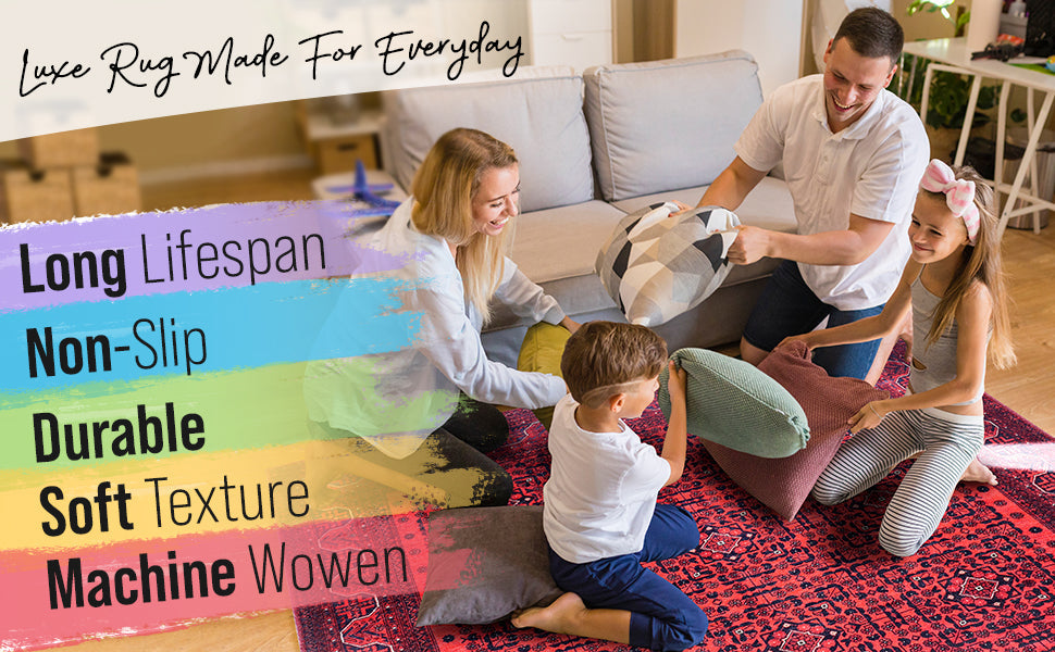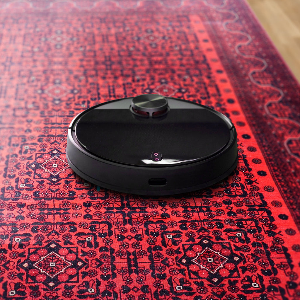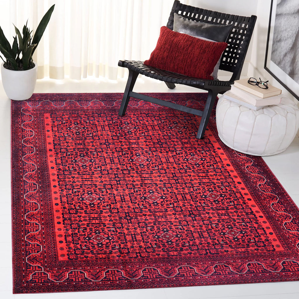 The NH1317 is more than a rug—it’s a story woven in red and black, connecting the tribal heritage of Turkmen Bokhara rugs with the modern comfort of washable convenience.