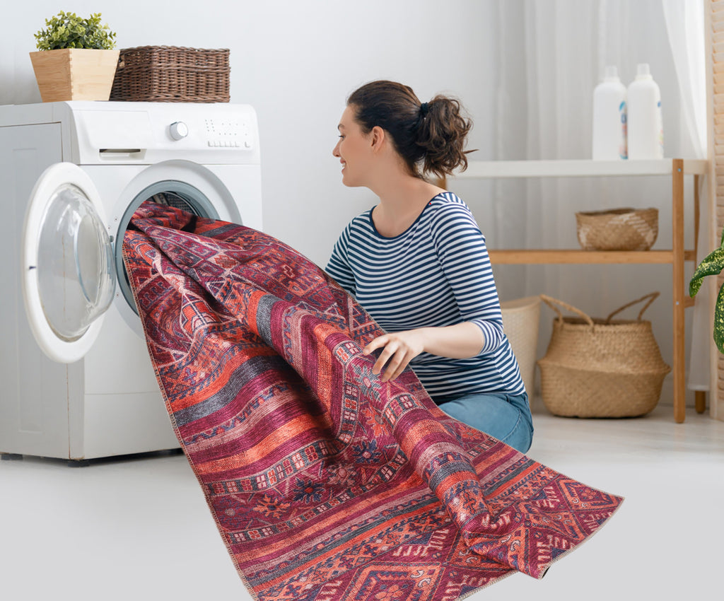 Rug Story: This design is inspired by Eastern Mediterranean patterns, continuing a weaving tradition that spans centuries. In this rug, hook motifs bring good luck and protection, bringing both symbolism and visual strength to the piece. Additionally, cross shapes reflect harmony between earth and sky, reminding us of the cultural wisdom woven into every thread. Artisans historically used such motifs not only for decoration but also as a language of hidden meaning. The repetition of patterns reflects the rhythm of daily nomadic life, marked by cycles of nature and seasons. Colour choices were never random; each tone represented aspects of the environment, spirituality, or status. This rug adapts those ideas into a modern washable textile while keeping the essence of tradition intact. By placing it in your home, you bring stories of ancestry, craftsmanship, and resilience underfoot. It becomes more than a decorative accessory Ð it is a cultural bridge between past and present. As you walk across it daily, you participate in the same timeless narrative that generations before have cherished.