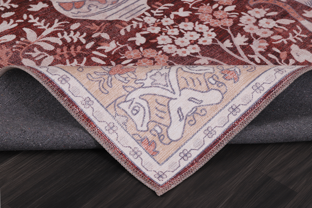 Rug Story: This design is inspired by Eastern Mediterranean patterns, continuing a weaving tradition that spans centuries. In this rug, medallions symbolise unity and balance, bringing both symbolism and visual strength to the piece. Additionally, floral vines stand for fertility and renewal, reminding us of the cultural wisdom woven into every thread. Artisans historically used such motifs not only for decoration but also as a language of hidden meaning. The repetition of patterns reflects the rhythm of daily nomadic life, marked by cycles of nature and seasons. Colour choices were never random; each tone represented aspects of the environment, spirituality, or status. This rug adapts those ideas into a modern washable textile while keeping the essence of tradition intact. By placing it in your home, you bring stories of ancestry, craftsmanship, and resilience underfoot. It becomes more than a decorative accessory Ð it is a cultural bridge between past and present. As you walk across it daily, you participate in the same timeless narrative that generations before have cherished.
