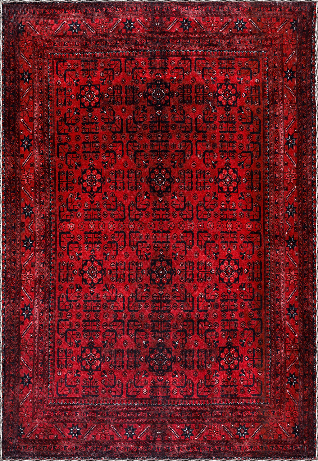 The red Afghan-style pattern is more than just decoration—it tells a story. Historically, red rugs symbolized prosperity, warmth, and protection. The repeating geometric medallions and floral-like details were used by nomadic tribes to represent unity, strength, and the cycles of life. For centuries, these motifs were woven by hand on traditional looms, passed down from generation to generation as family heirlooms.