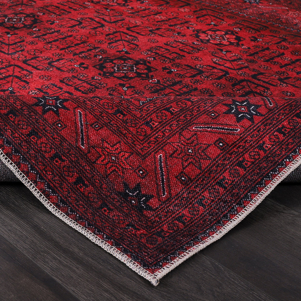 Bring timeless elegance into your home with the Netline Home RW1001 Machine Washable Rug, featuring a rich Afghan-inspired red background with intricate geometric motifs. Crafted for modern living, this traditional oriental style rug combines authentic design with the convenience of easy machine washability. Perfect for high-traffic areas such as living rooms, bedrooms, dining rooms, or offices, this rug offers durability, vibrant colors, and low maintenance—all while adding a bold statement to your space.
