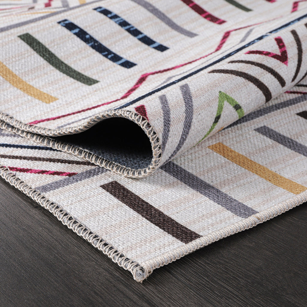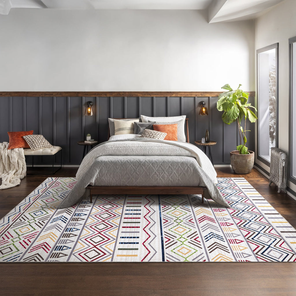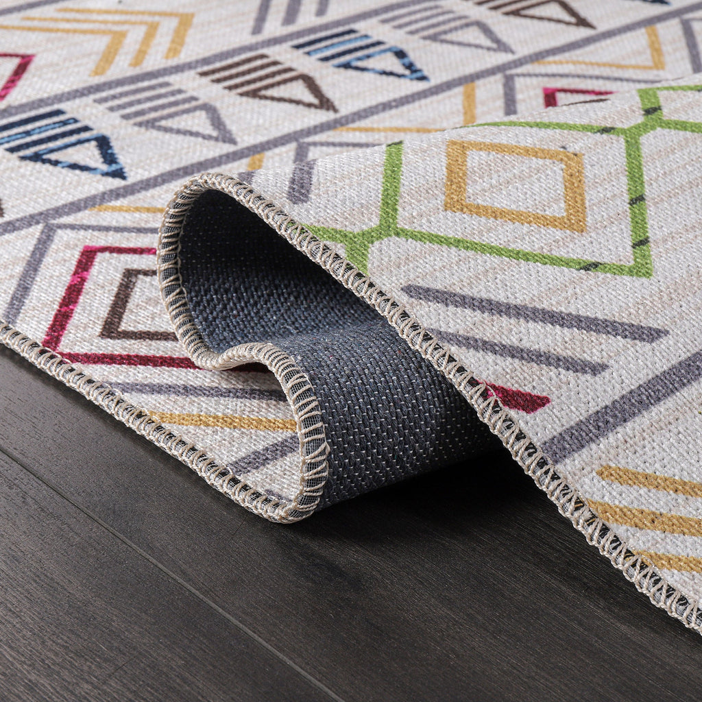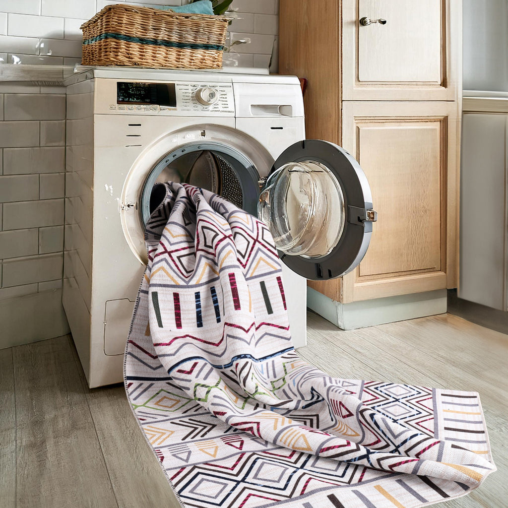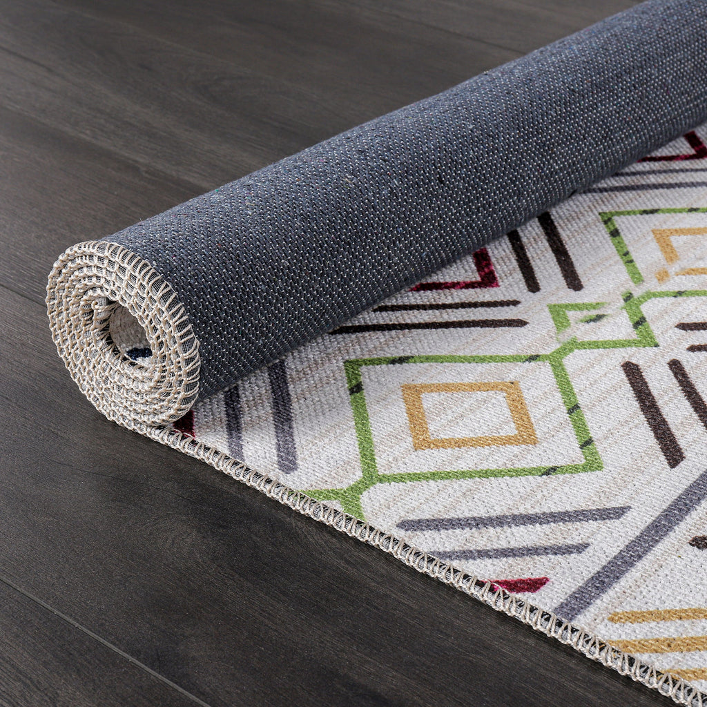 Rug Story: This design is inspired by Anatolian village weavings, continuing a weaving tradition that spans centuries. In this rug, sunburst motifs symbolise energy and hope, bringing both symbolism and visual strength to the piece. Additionally, circle forms stand for wholeness and eternity, reminding us of the cultural wisdom woven into every thread. Artisans historically used such motifs not only for decoration but also as a language of hidden meaning. The repetition of patterns reflects the rhythm of daily nomadic life, marked by cycles of nature and seasons. Colour choices were never random; each tone represented aspects of the environment, spirituality, or status. This rug adapts those ideas into a modern washable textile while keeping the essence of tradition intact. By placing it in your home, you bring stories of ancestry, craftsmanship, and resilience underfoot. It becomes more than a decorative accessory Ð it is a cultural bridge between past and present. As you walk across it daily, you participate in the same timeless narrative that generations before have cherished.