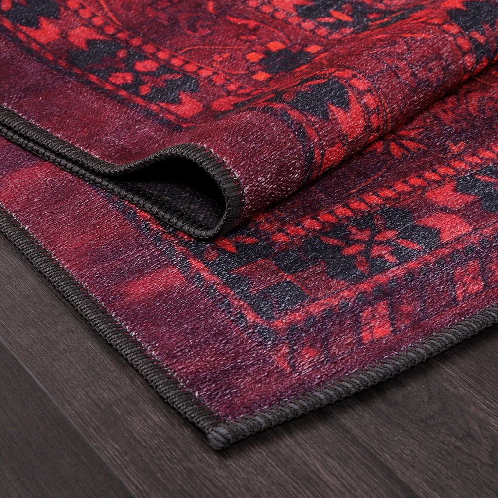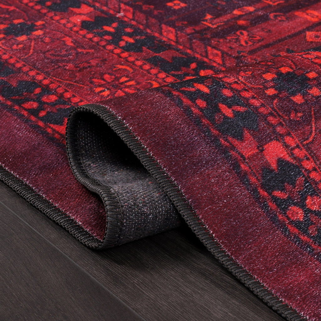 The Netline Home RW1009 Machine Washable Red Tribal Medallion Rug celebrates the timeless artistry of tribal weaving traditions, blending them with the comfort and practicality required in modern homes. Its striking diamond-shaped medallion motifs framed by intricate borders create a powerful focal point that adds warmth and character to any room.