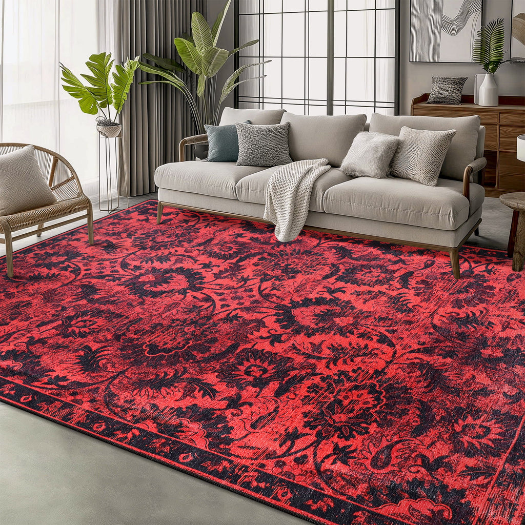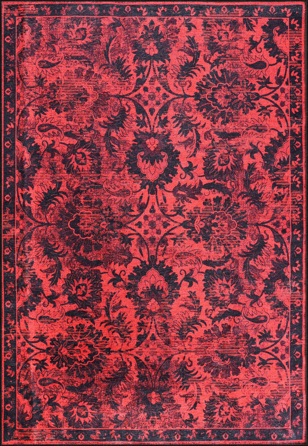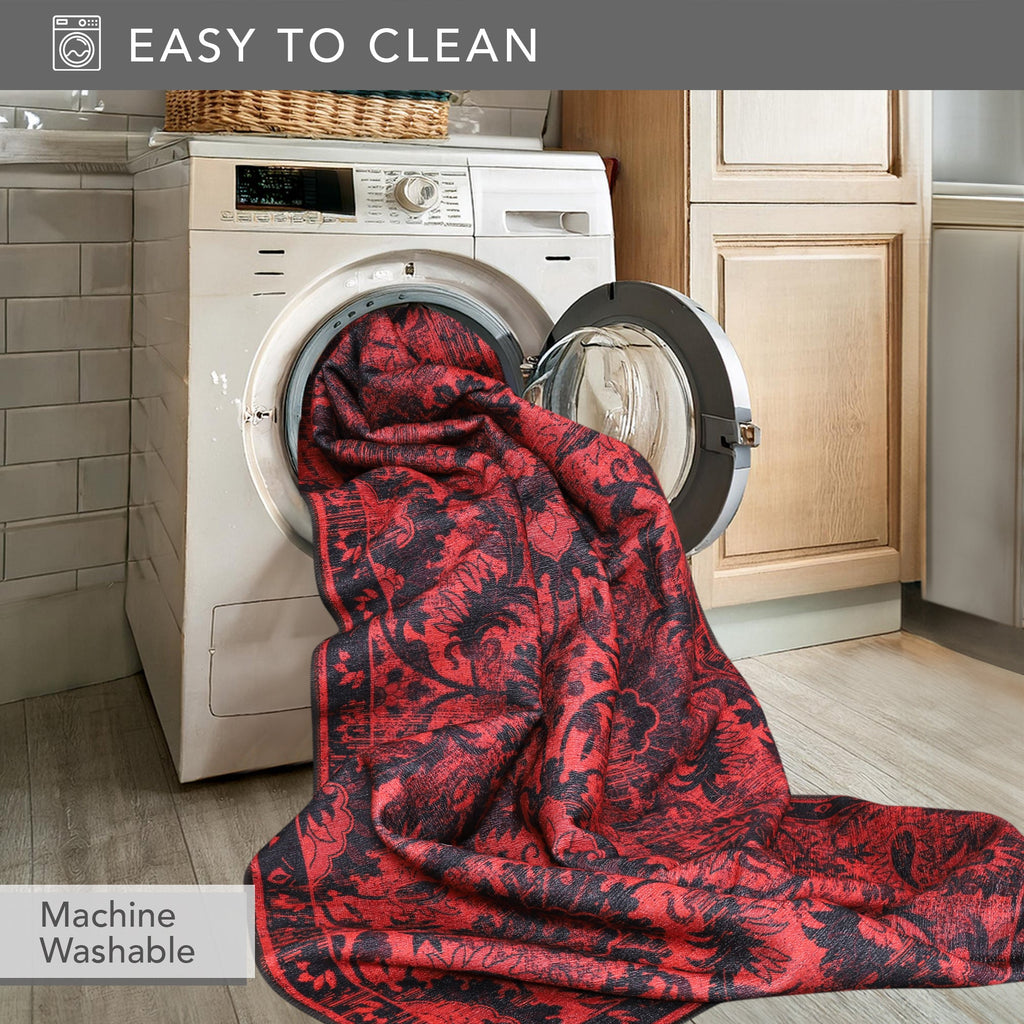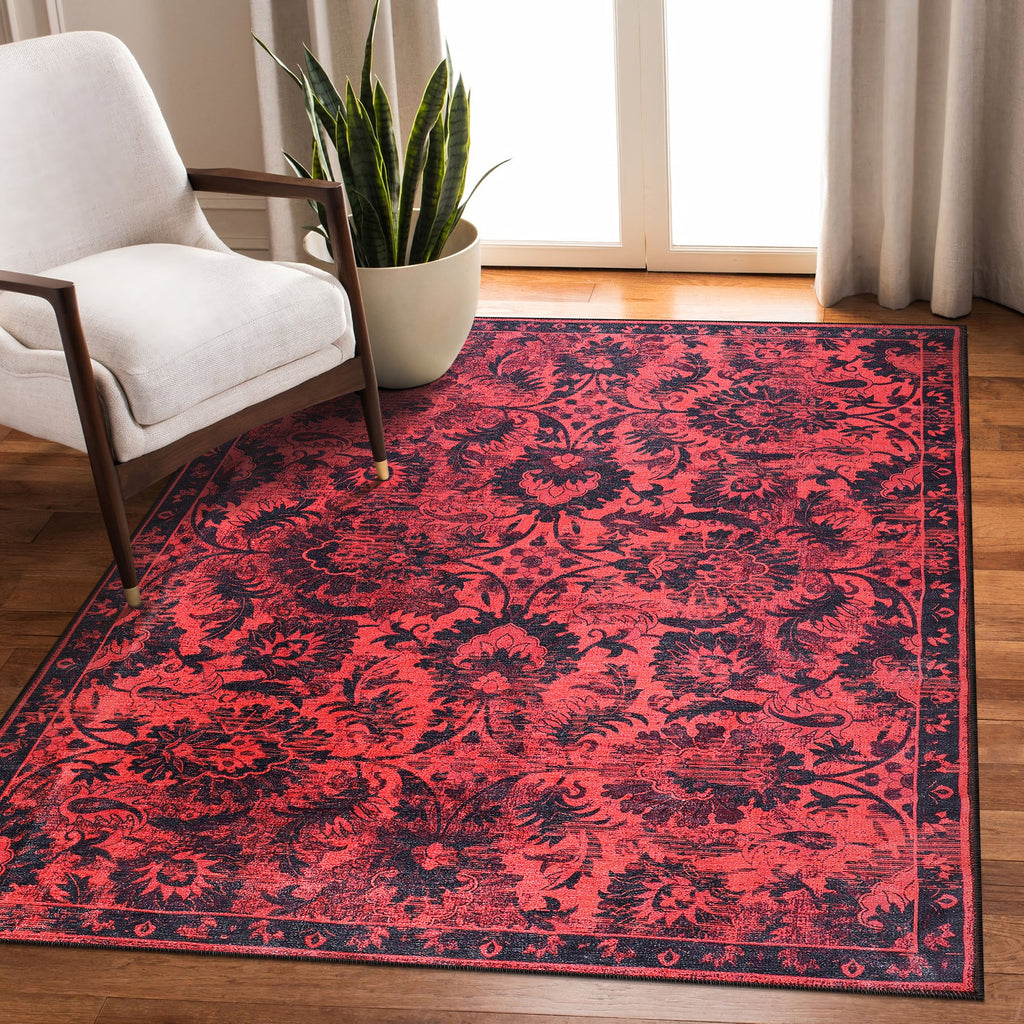 The Netline Home RW1010 Machine Washable Red Vintage Floral Rug combines heritage artistry with modern practicality. Featuring a bold damask-inspired floral design in deep red and black, this rug makes a powerful statement while offering the comfort and convenience of easy machine washability.