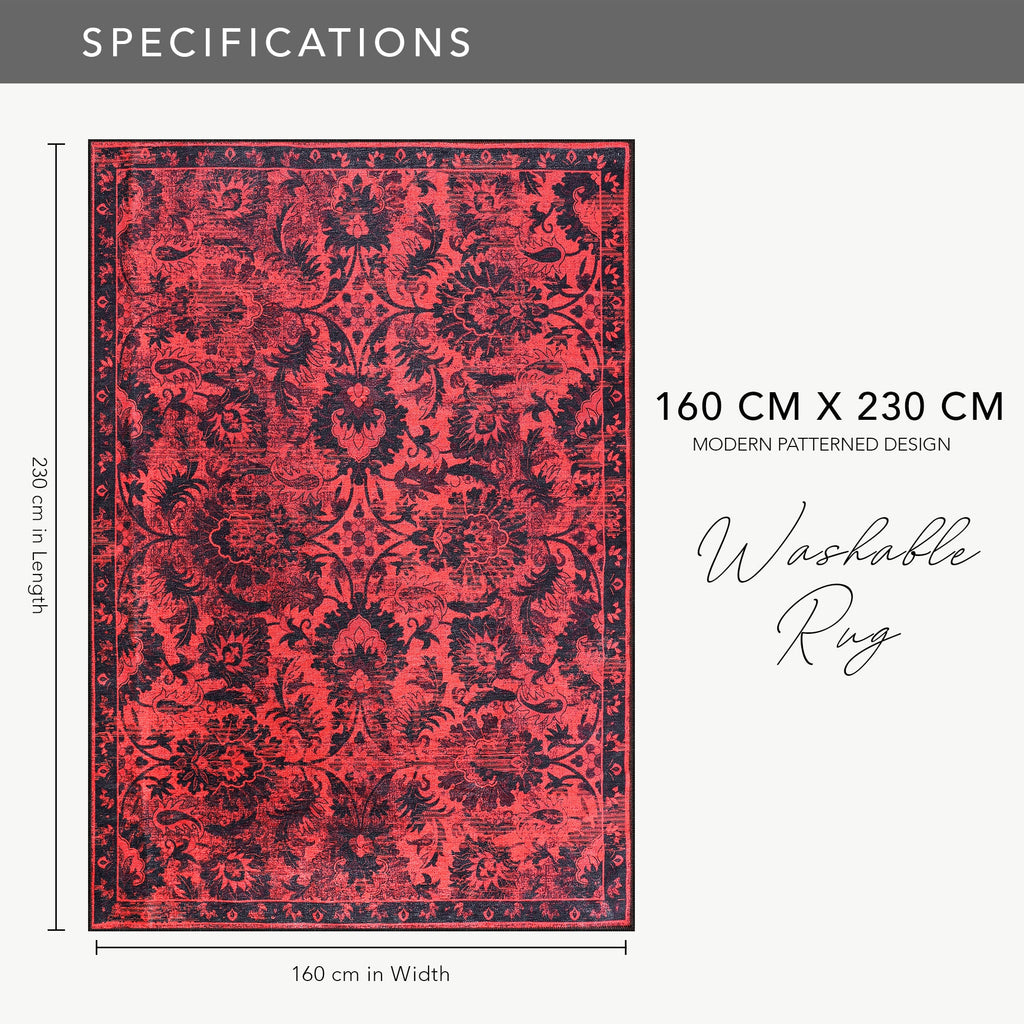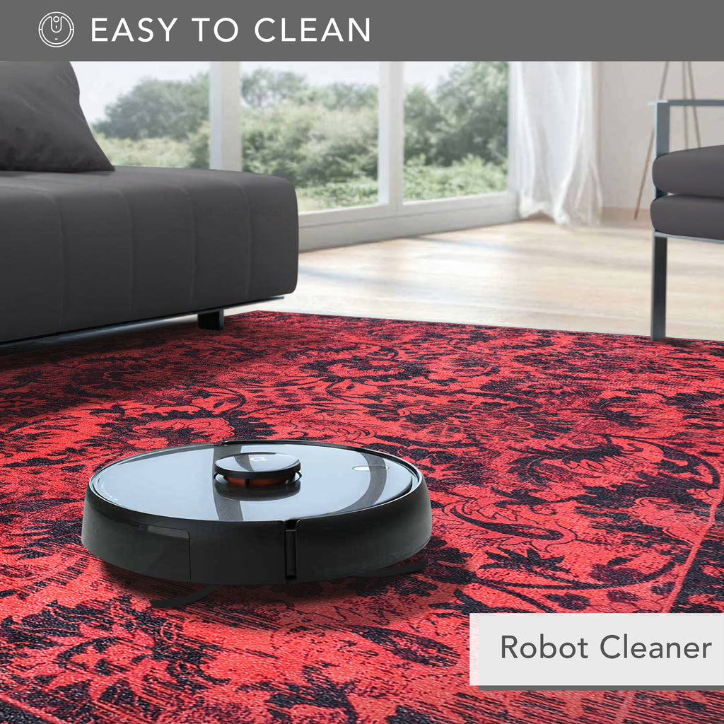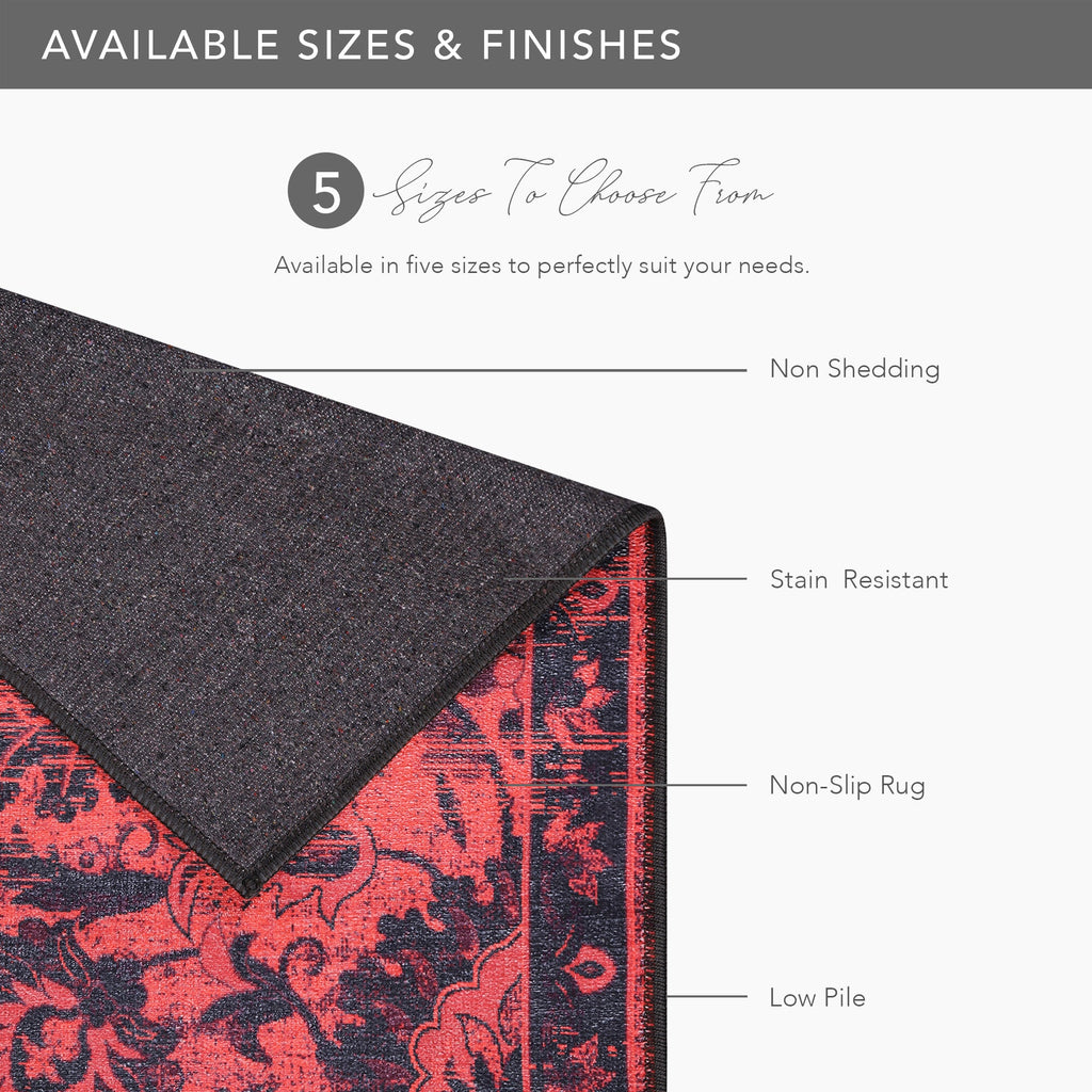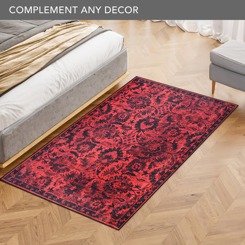 The Netline Home RW1010 Machine Washable Red Vintage Floral Rug combines heritage artistry with modern practicality. Featuring a bold damask-inspired floral design in deep red and black, this rug makes a powerful statement while offering the comfort and convenience of easy machine washability.