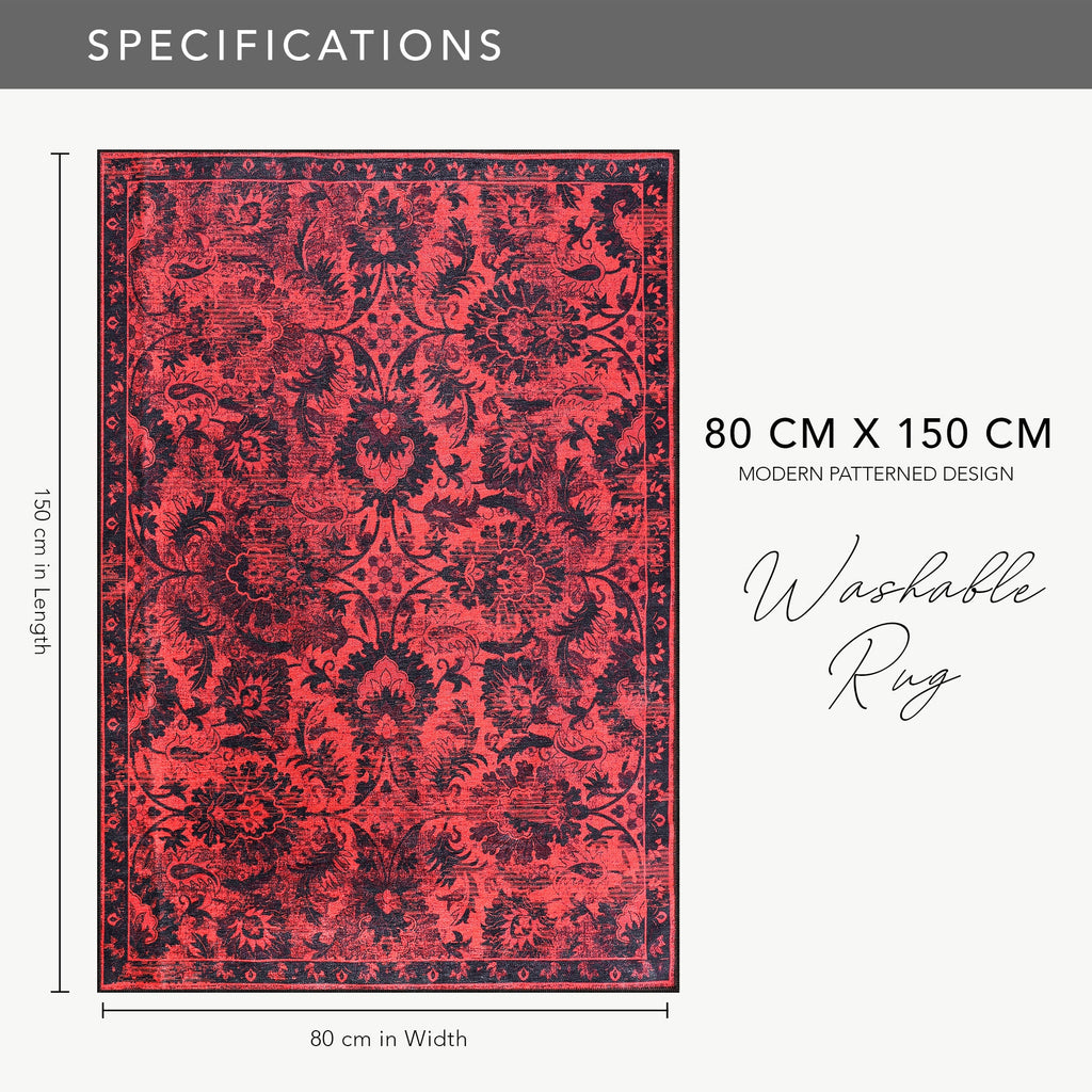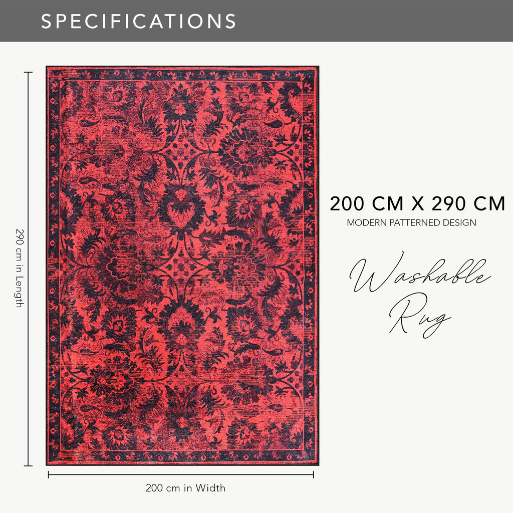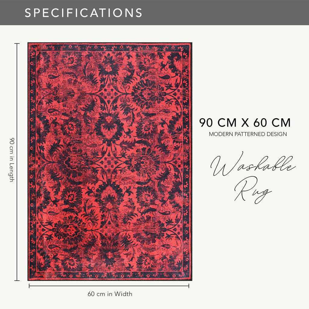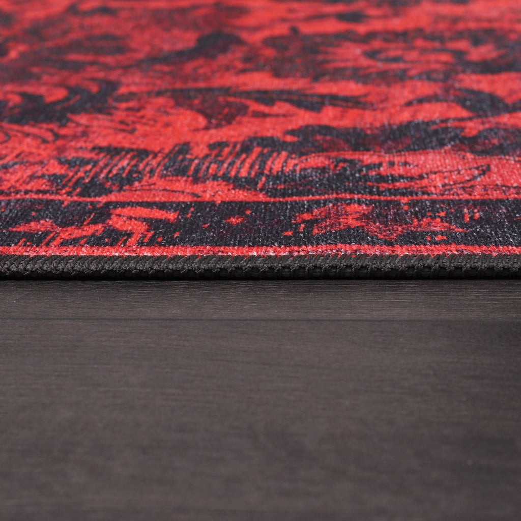 The Netline Home RW1010 Machine Washable Red Vintage Floral Rug combines heritage artistry with modern practicality. Featuring a bold damask-inspired floral design in deep red and black, this rug makes a powerful statement while offering the comfort and convenience of easy machine washability.